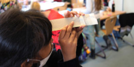 Im Anschluss wurden Aufbau und Funktionen eines Kaleidoskops unter die Lupe genommen und daraufhin selber welche gebaut! Mit Unterstützung der Klassenlehrerin, einer Lesepatin und einer Praktikantin konnte jedes Kind ein eigenes Kaleidoskop erstellen.